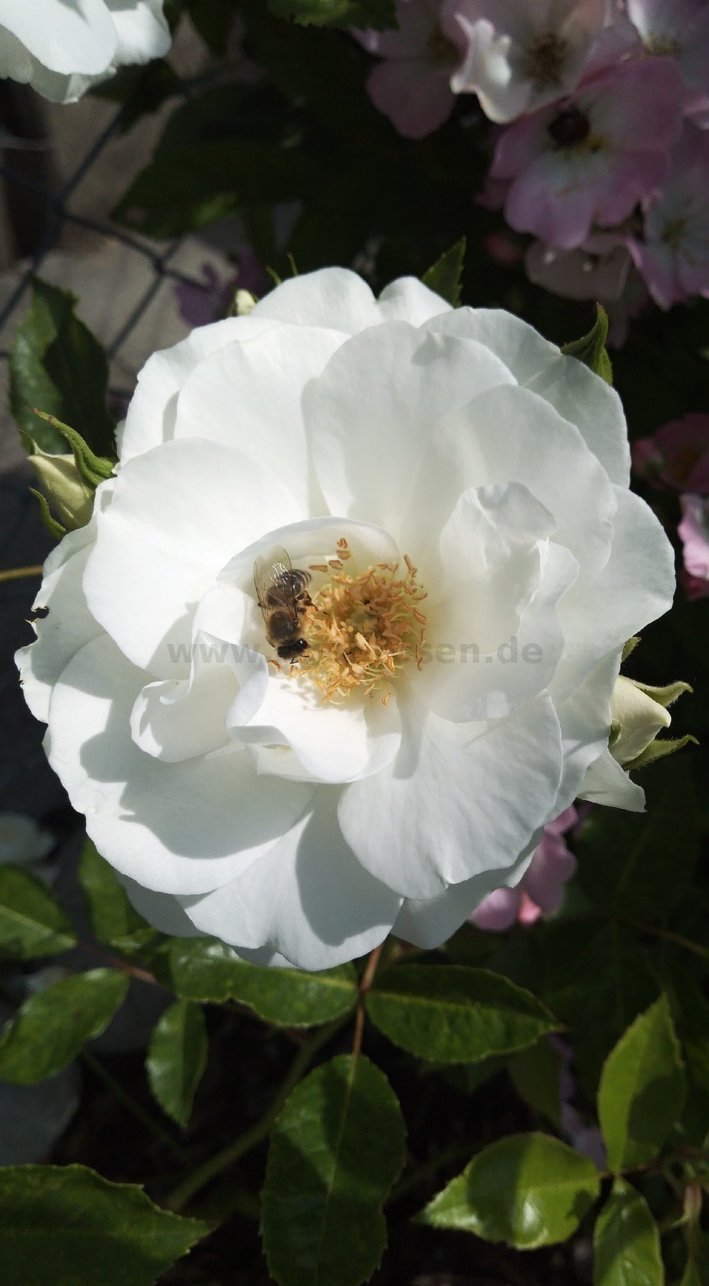 Die traumhafteste Rose aller Zeiten! Schneewittchen wächst bei uns inzwischen seit 2000. Gekauft wurzelnackt, sehr gut angewachsen, wuchsfreudig und bestechend durch maximalen Blütenreichtum. Diese Rose blüht unermüdlich von Juni bis in den Spätherbst.