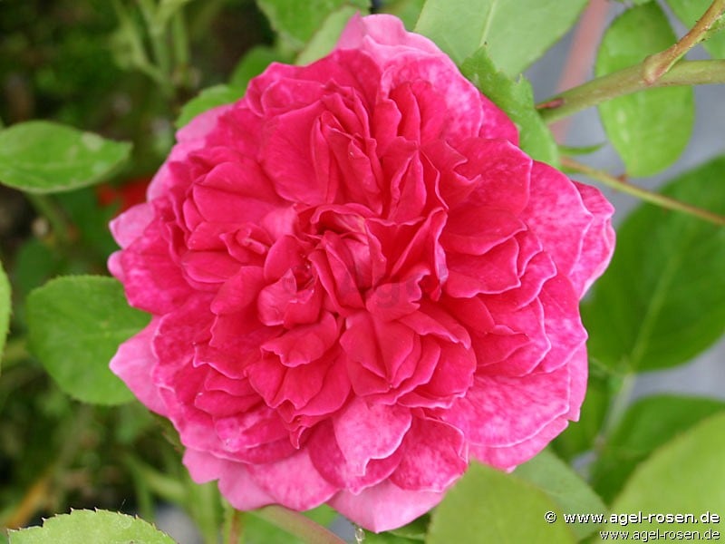 breite, flache, innen gefüllte, rosettenförmige Blüte