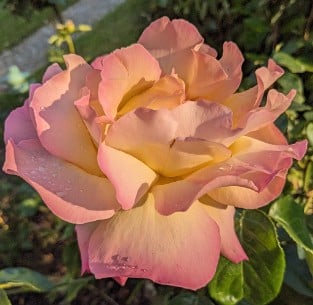 Gloria Dei ? eine klassische Edelrose, noch aus der Zeit des 2. Weltkriegs, daher heutigen Pilzattacken nicht mehr ganz gewachsen. Da sie diesen besonderen, charmanten Farbverlauf aus Gelb und Rosa zeigt, sollte man sie immer noch pflegen, könnte aber auch auf die gesündere, sehr ähnlich, aber kräftiger gefärbte ?Henrietta? ausweichen.